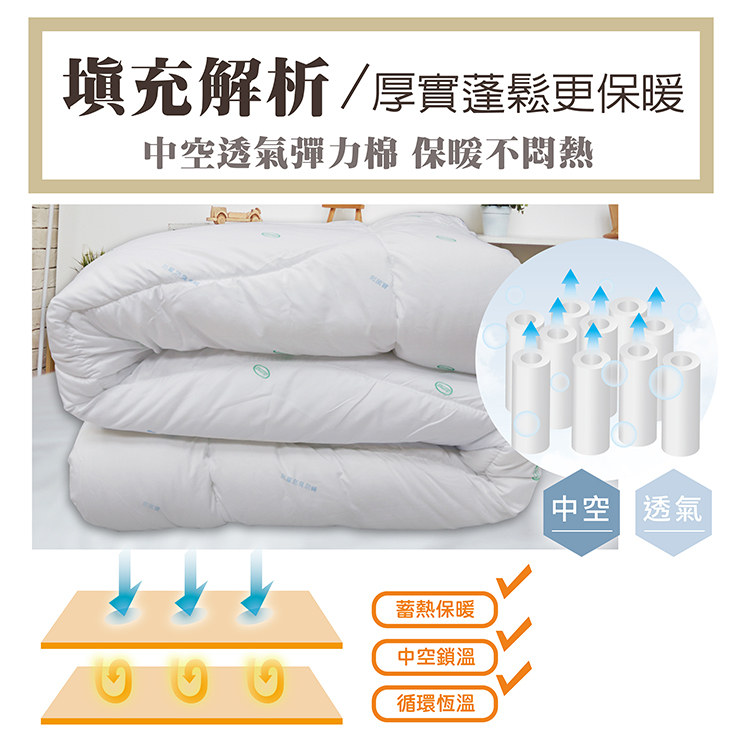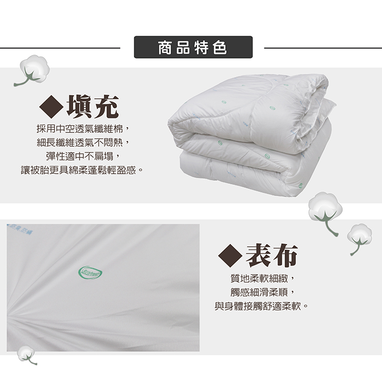★材質:表布─100%聚酯纖維 (添加防蹣抗菌藥劑)填充物─100%聚酯纖維棉(中空透氣棉)