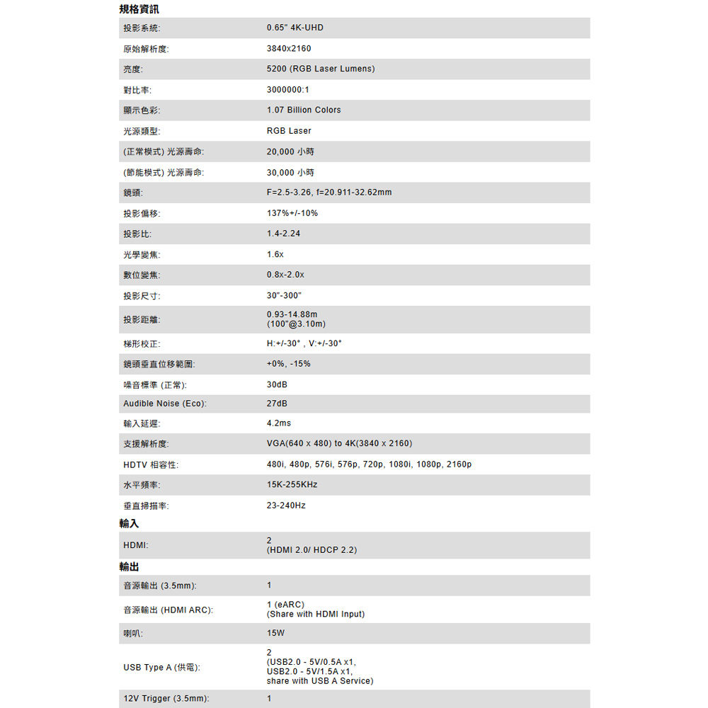 -5,200 RGB 雷射流明,在任何光源環境下盡享大銀幕絕佳體驗