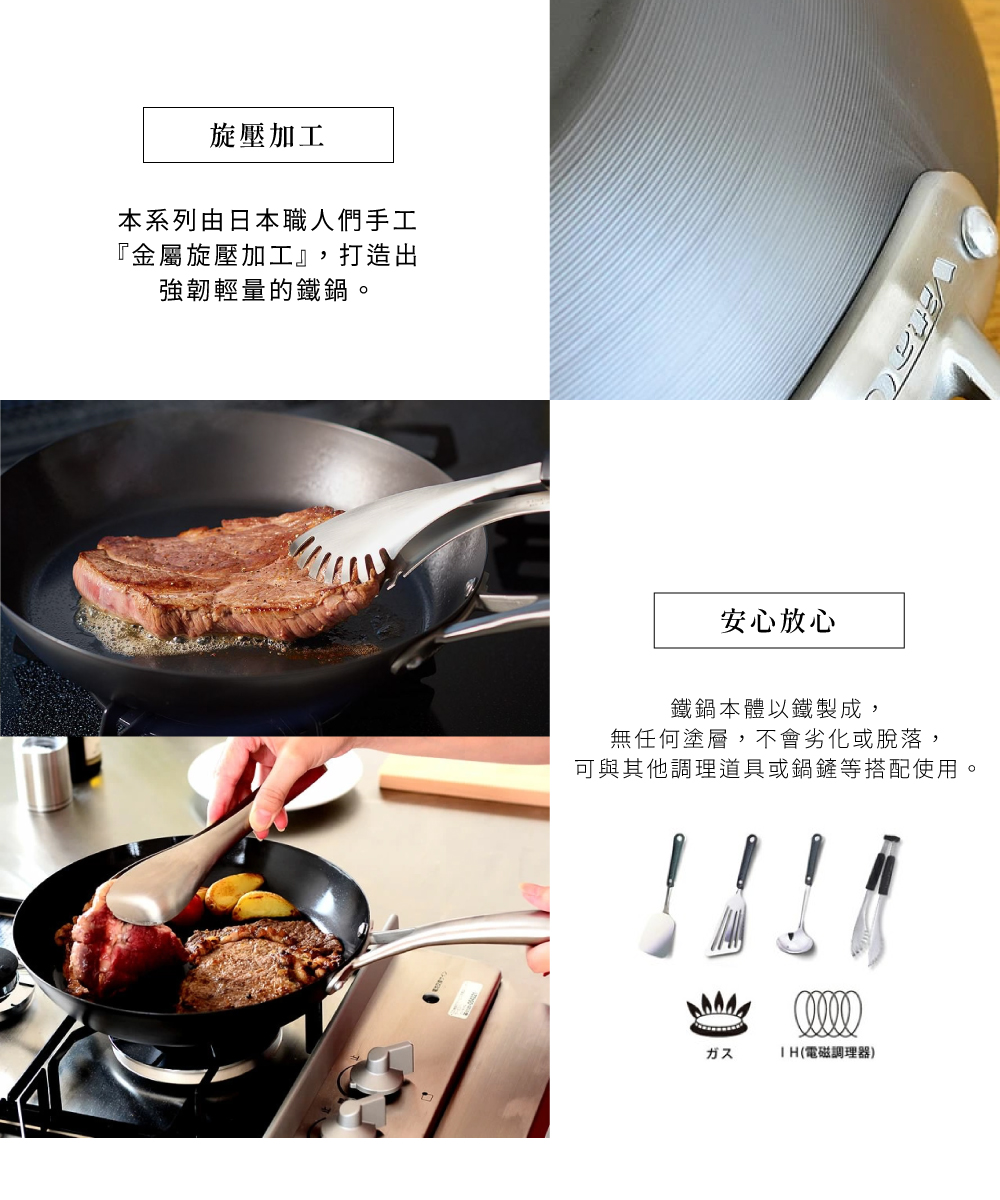 ■採用日本獨家窒化四層加工技術,連鐵板內部也都有上層加工。 不易生鏽且無須擔心表面塗層剝落!優於一般鐵板的五倍強度!■鐵鍋獨有的極佳蓄熱性!不易散熱,短時間內即可完成美味料理。■不易生鏽、不易黏鍋,甚至也無須開鍋及養鍋。 使用後,用刷具刷洗髒污處再自然瀝乾即可。省去一切繁瑣保養步驟,讓料理變得更簡單日常!■鍋底厚實而側面輕薄,不同於普遍加壓鑄型的笨重感。 鍋柄為中空不鏽鋼,不易導熱。 《VitaCraft》Super Iron系列 日本製無塗層單柄鐵炒鍋 (30cm)■尺寸:全長50.2×徑30×高14.3(深8.4)cm ×底徑約17.5cm■重量:1.4kg■容量:4.2L■材質:本體/鐵(窒化加工、板厚1.6mm)、鍋柄/不鏽鋼■可使用於200V電磁爐■日本製