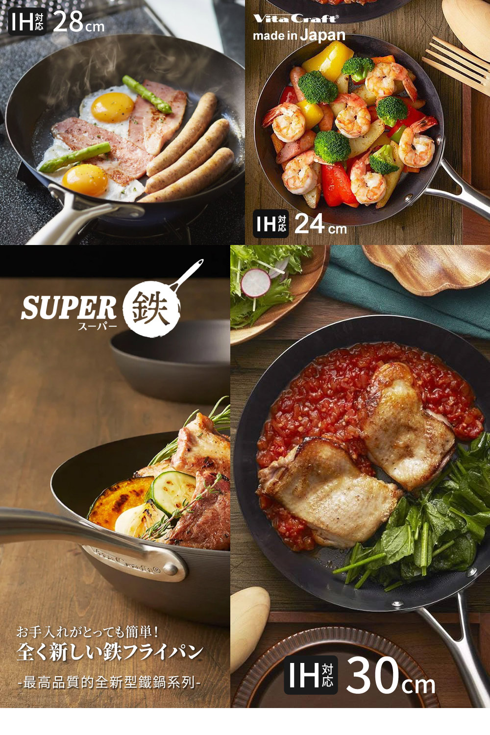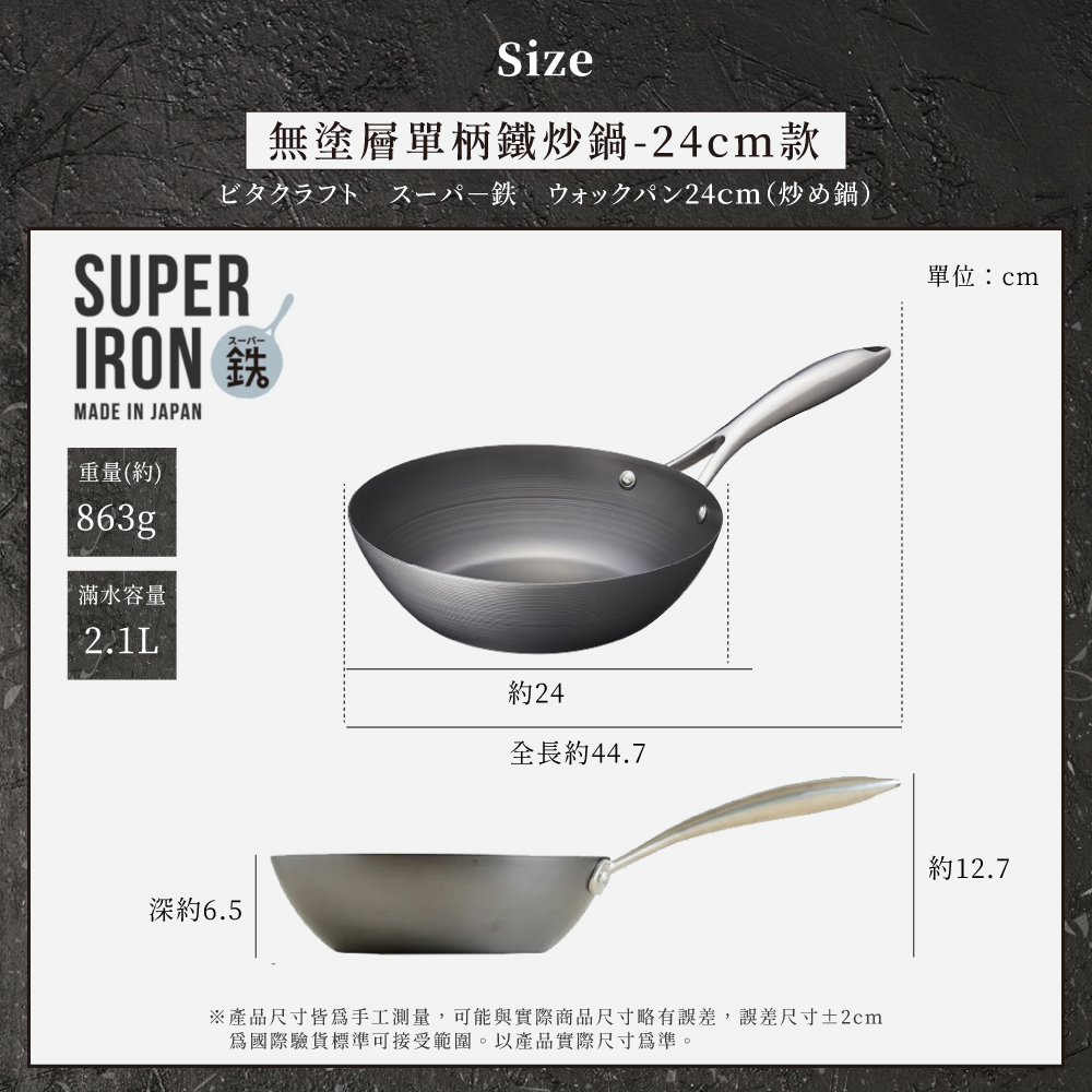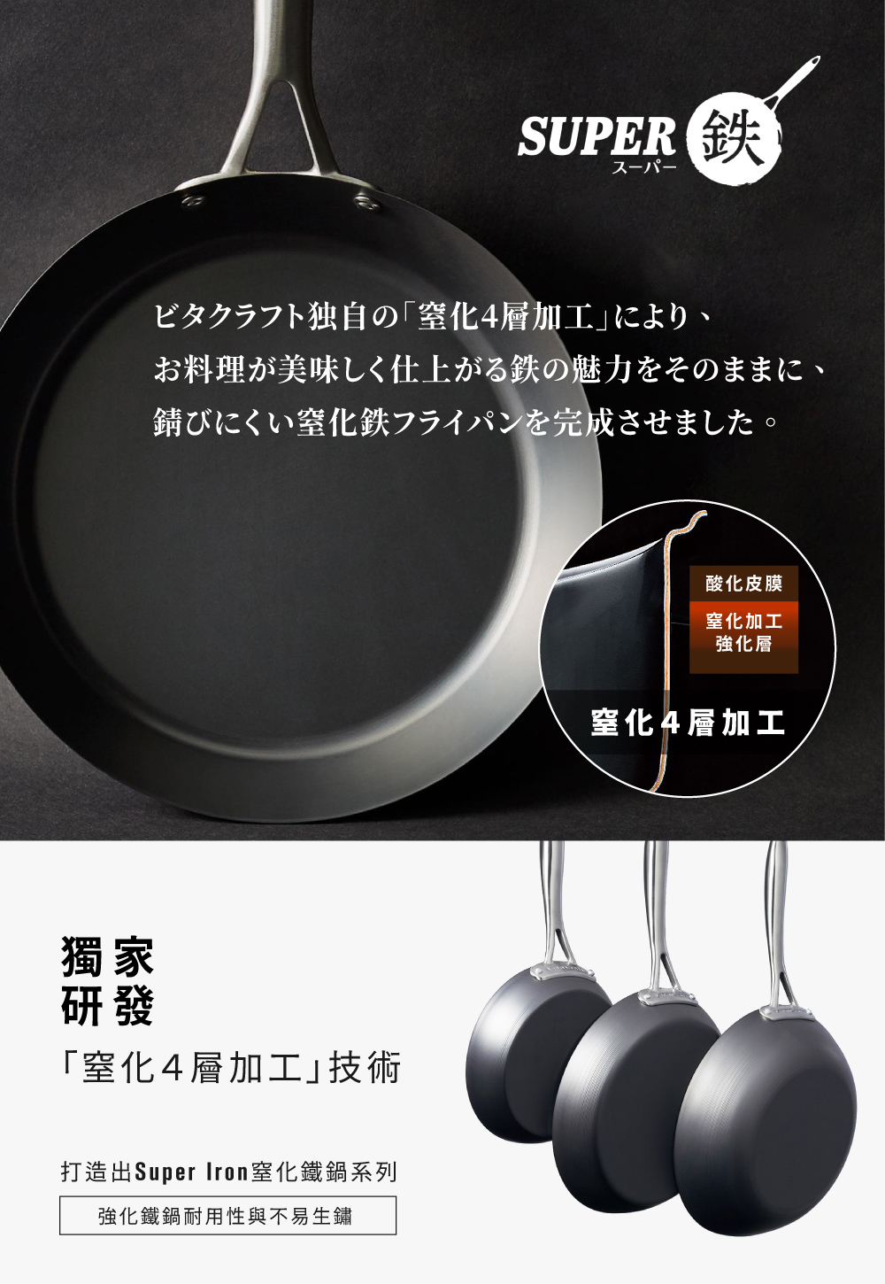 【vitacraft】日本製窒化鐵 無塗層單柄鐵炒鍋 24cm(Super Iron系列)
