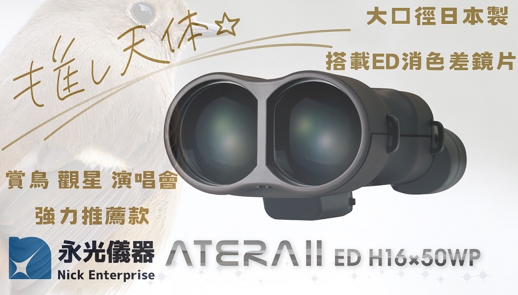 ATERA系列防震雙筒望遠鏡的頂級型號,配備高性能ED鏡片。
