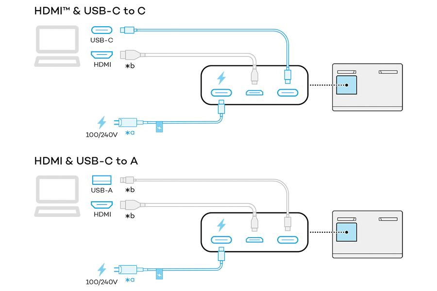 備註:1. 標配數位筆未包含自訂配件,使用者可購買筆握或 Pro Pen 3 套裝自訂筆身;2. Cintiq 16 支援 99% DCI-P3 及 Display P3 色域;3. HDMI 連接:需要將 HDMI 轉 mini HDMI 連接線(需另購)及 USB Type-C 轉 USB-A 資料傳輸線(需另購)或 USB Type-C 資料傳輸線同時連接至電腦。4. USB Type-C連接:需電腦 USB-C 連接埠支援 DisplayPort Alt Mode 的影像輸出及 USB Power Delivery (PD) 電力傳輸,如果您的電腦不支援電力傳輸或供電不足,請連接單獨的電源線。※電腦與螢幕的連線方式請詳閱最下方圖文說明