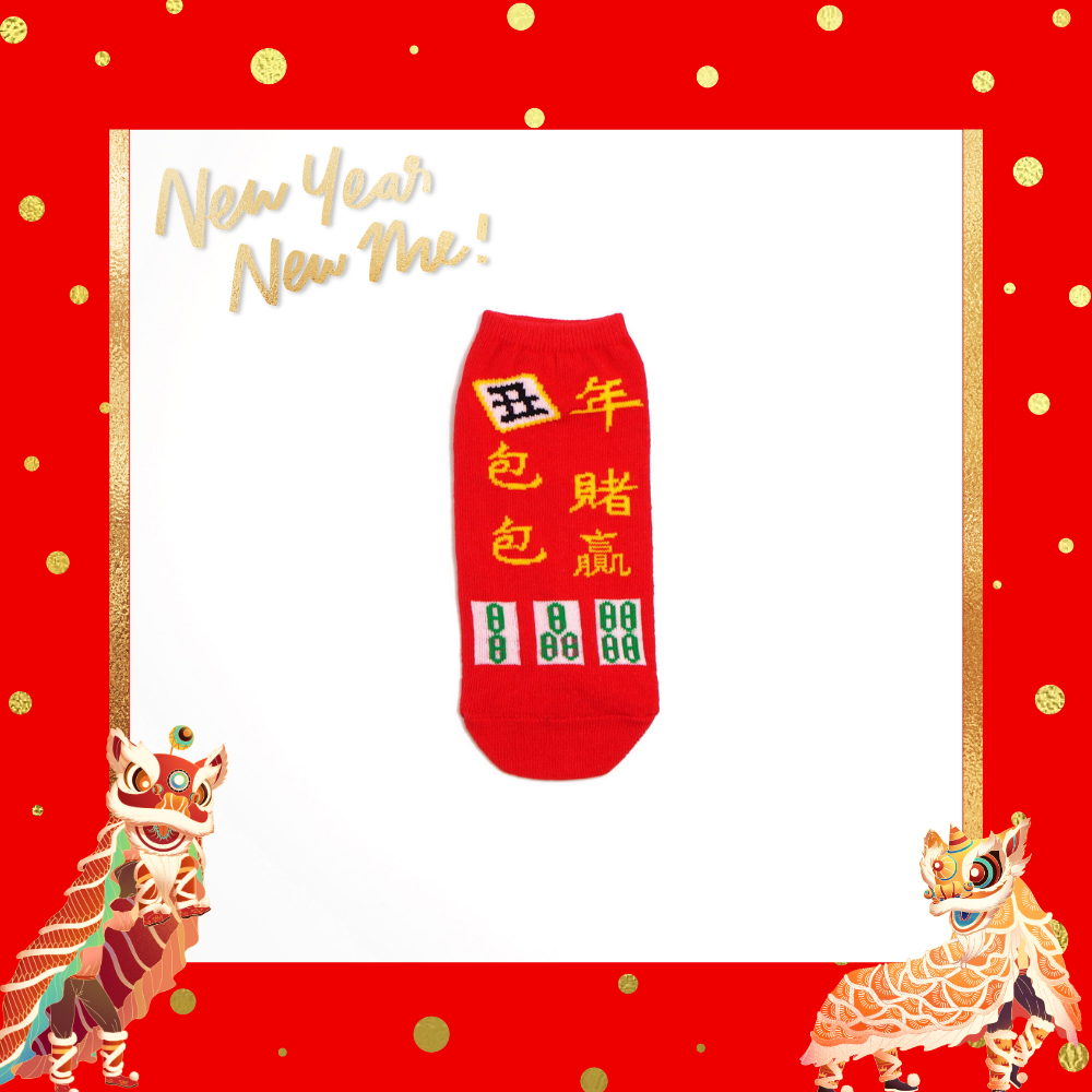 【台灣製】新年主題襪-麻將 (成人) 男襪 女襪(有腳跟)-包賭包贏