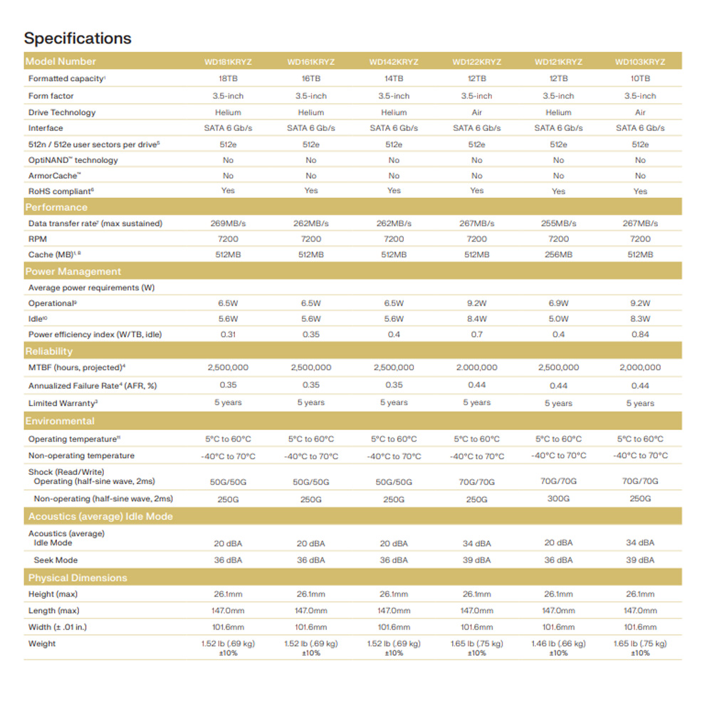 WD Gold™ 提供容量從 1TB 到 26TB1 的全面 SATA HDD 產品組合,可令您以自己的方式建立儲存空間,專為繁重的應用程式工作負載而設計,每年可處理高達 550TB2 的工作負載。