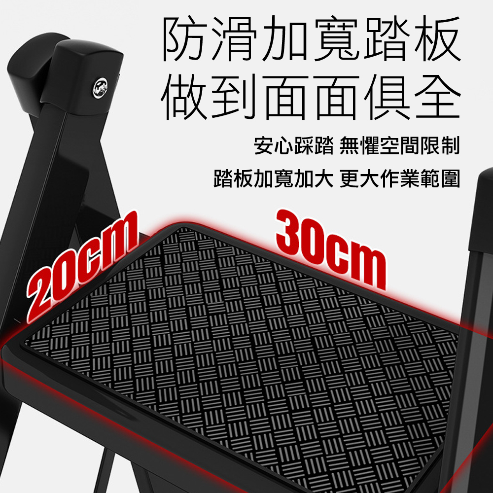 【WE CHAMP】碳鋼二階折疊梯-黑(人字梯 梯子 摺疊梯 工作梯)