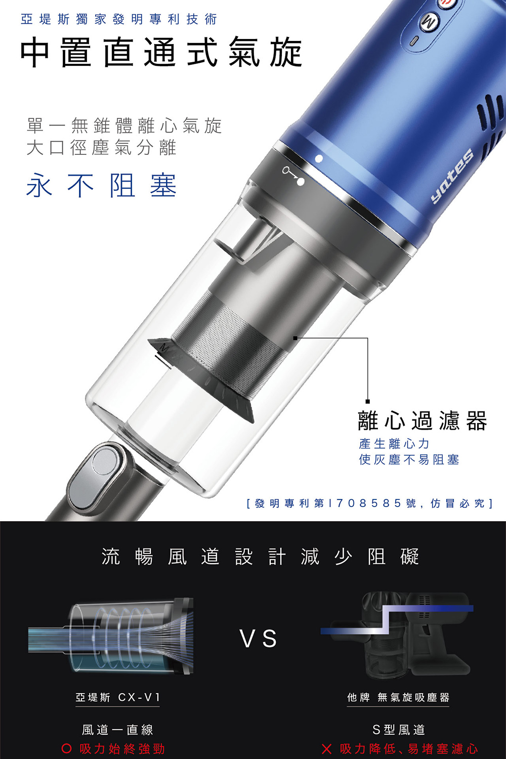 【Yates亞堤斯】雙電池旗艦版|台製CV-X1二代 發明專利 智慧氣旋無線吸塵器 手持式吸塵器 可拆卸電池 超強吸力