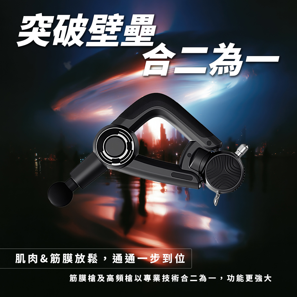 A:【雙鋒高頻槍】同時結合高頻槍與筋膜槍,能兼顧大面積放鬆與深層精準按摩,一機雙效,滿足專業級舒壓需求。