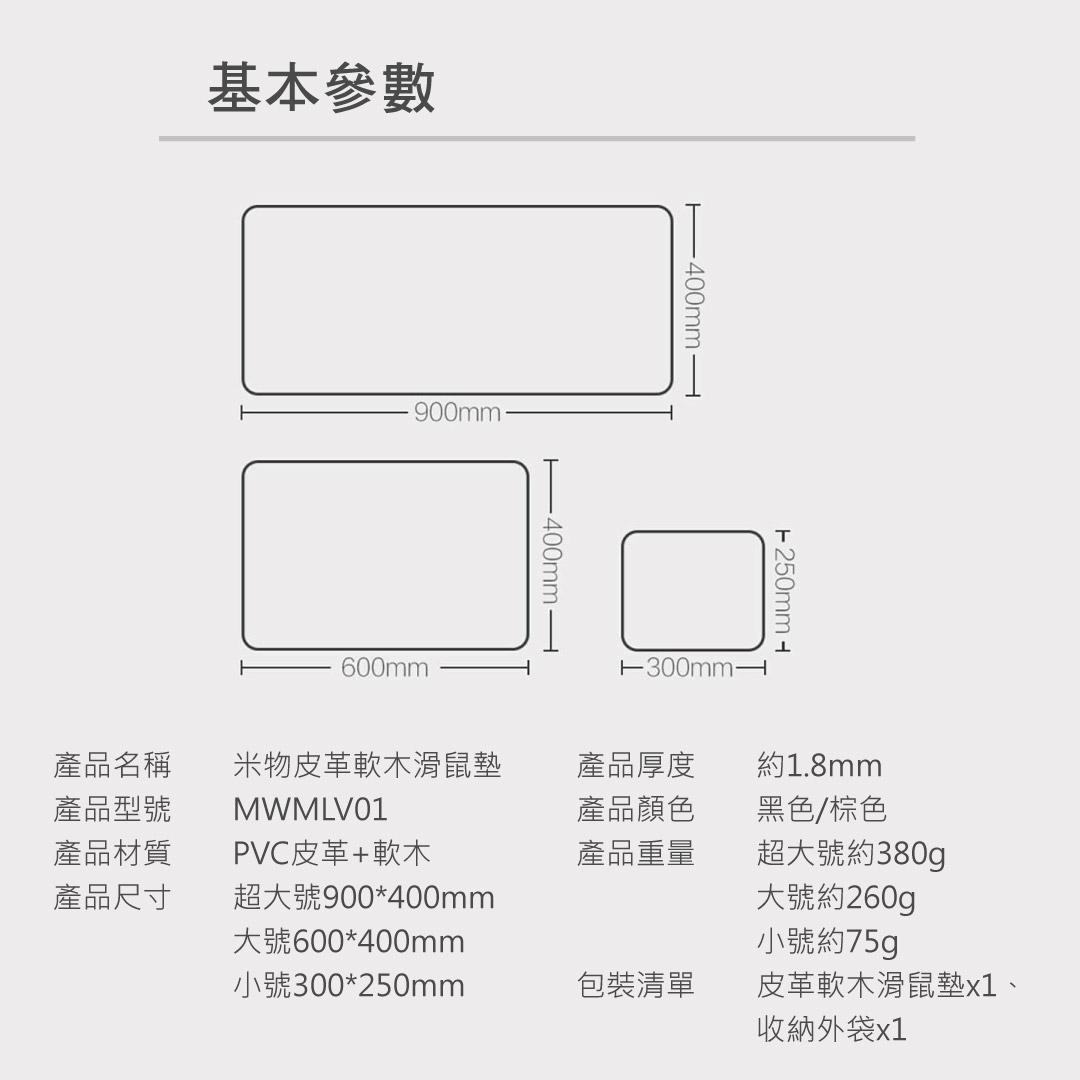 雙面防水,雙面質感柔軟耐用,隨意彎折精密鎖邊,防止翹邊產品重量:約75g產品材質:PVC皮革+軟木產品尺寸:300*250mm產品厚度:約1.8mm產品顏色:棕色/黑色*以上尺寸皆為人工測量,稍有誤差敬請見諒以上規格依原廠提供資料為準,實際以出貨商品為準。