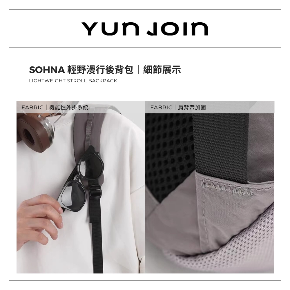 【YUNJOIN】Sohna 雲暮城旅後背包 輕量防潑水 筆電收納 多層收納袋設計 插行李箱拉桿|中性日韓風
