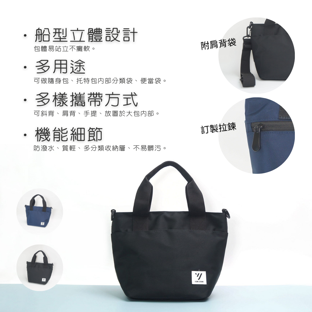 感謝各位蒞臨 YUNJOIN本賣場公司現貨供應且隨訂單由蝦皮代開立電子發票合法登記營業之店家,安全品質有保障【產品介紹】輕巧、實用、耐看可手提可側背材質:尼龍布結構:手提包、側背包尺寸:30、(19.5) * 15 * 21 cm 上長、底長 * 寬 * 高重量:205 g顏色:藍色、黑色 (顏色可能會因攝影或螢幕有些微差異)#YUNJOIN #YUN JOIN#方便 #實用 #輕巧 #耐用#媽媽包 #手提包 #水餃包 #便當袋 #隨身袋 #隨身包#情人節 #女王節 #新年────────────────────────────────────────────【客服】 線上快速諮詢有問題歡迎詢問,專人在線為您服務。若有任何問題或是收到商品時發現異常,可拍照片傳至聊聊客服人員上班時間會馬上為您處理。服務時間:週一至週五09:00~18:00