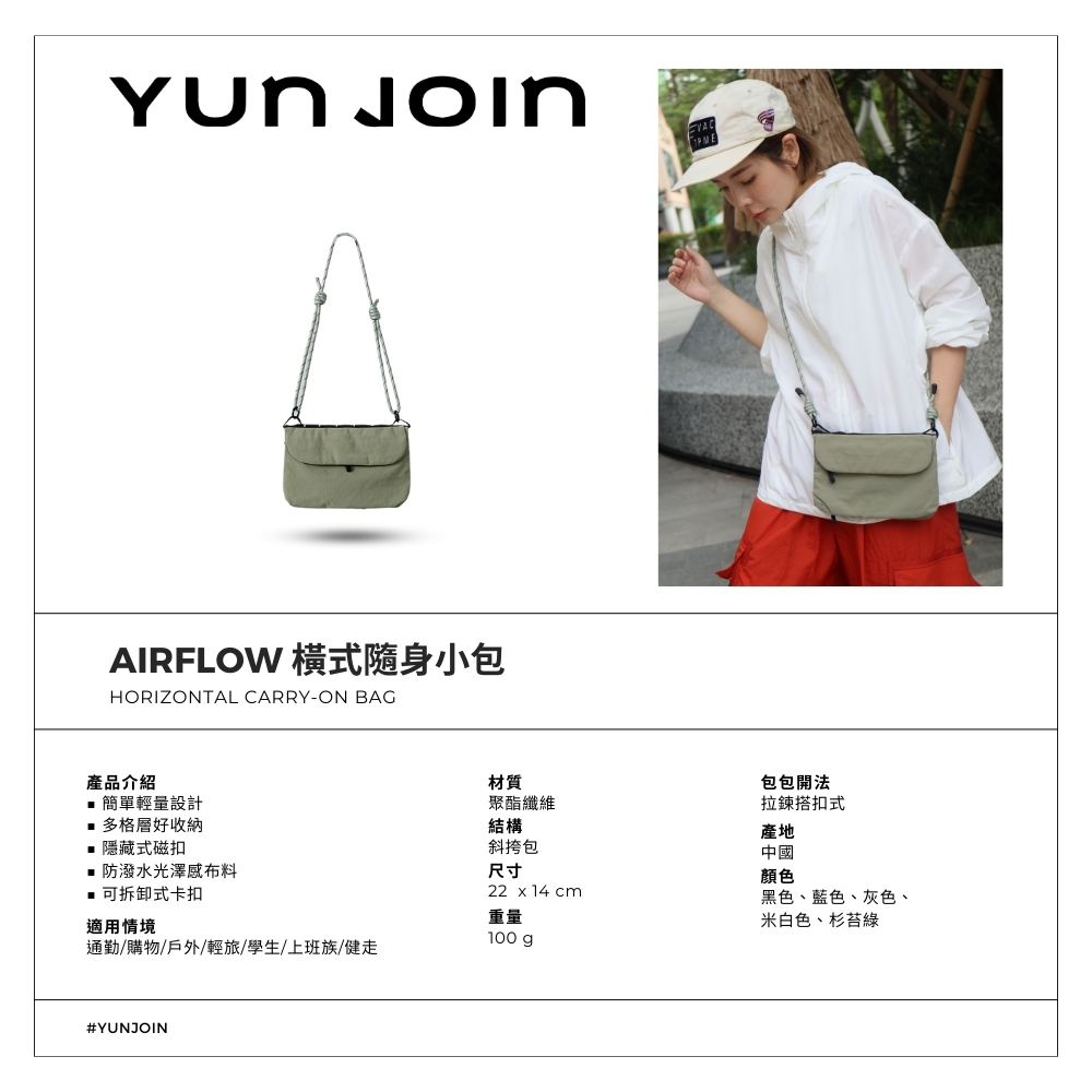 【YUN JOIN】AIRFLOW 橫式隨身小包-黑色 側肩包 逛街配件 橫式掛包