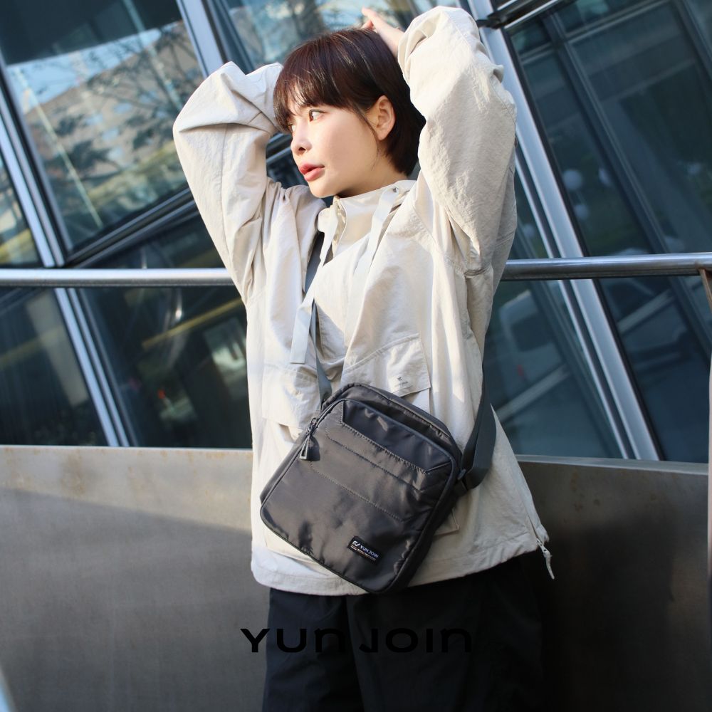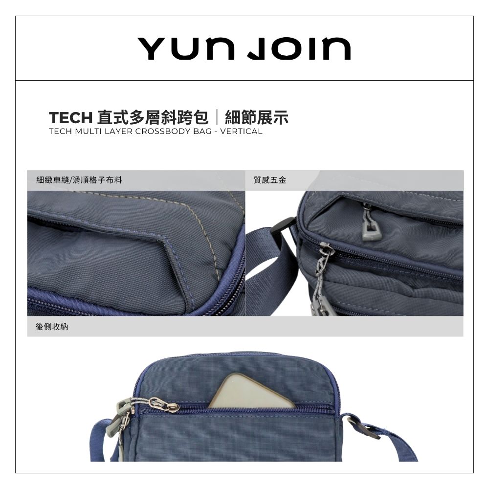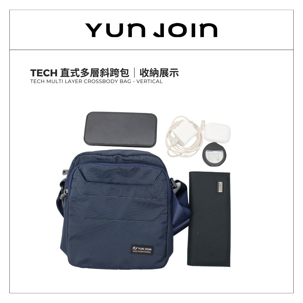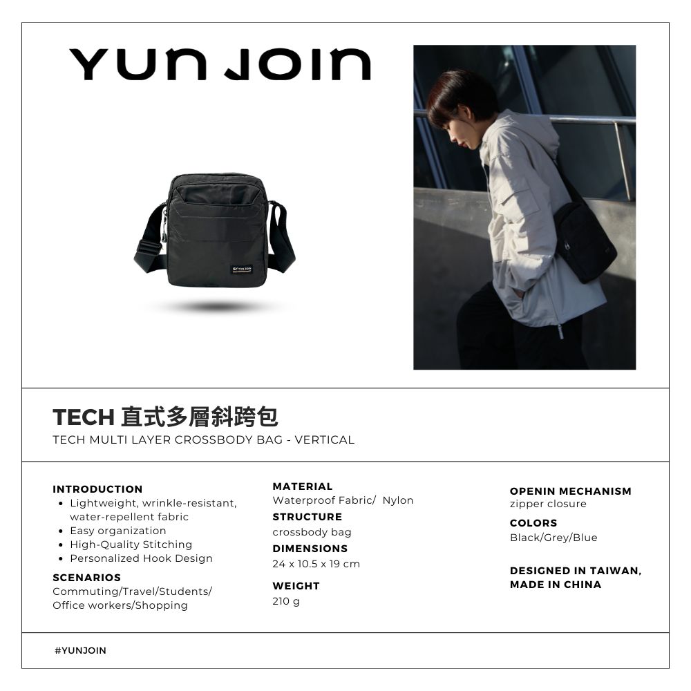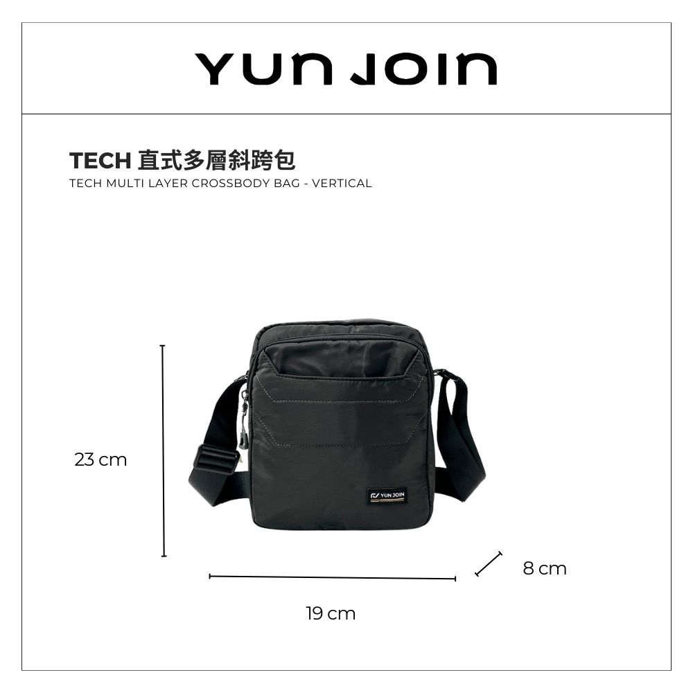 【YUNJOIN】Tech 直式多層斜跨包-黑色 都會小包 側背包 科技布料