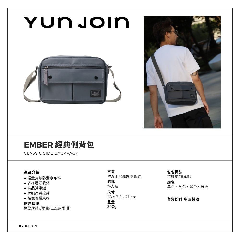 【YUN JOIN】EMBER 經典側肩包-灰色 側背包 斜背包 公事包 收納 防潑水【超強7層收納】