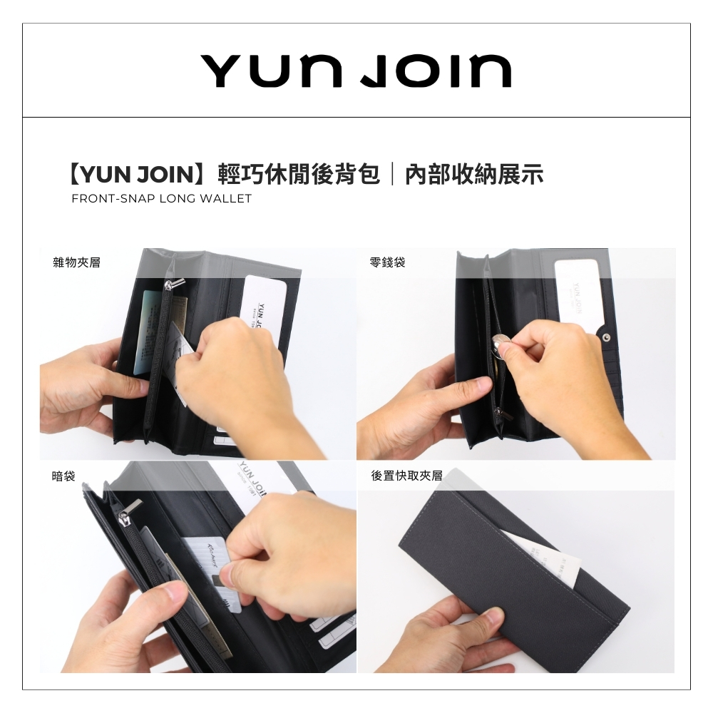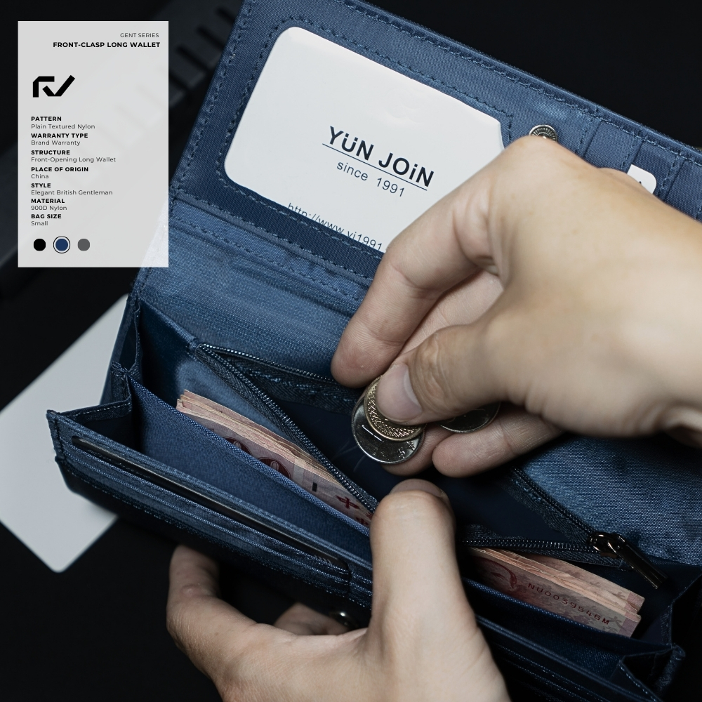 感謝各位蒞臨 YUJI本商店絕對 100% 公司現貨供應且商品一律附上發票合法登記營業之店家,安全品質有保障。【產品介紹】前扣對折式長夾簡約的設計適合都會上班族、學生使用內部分上下兩側,各有6個卡位。可收納很多卡片。大鈔夾層上下各二,下層除了卡位夾層外還有拉鍊零錢收納夾層、暗袋非常適合收納發票收據等雜物。【產品規格】材質:900D 尼龍布尺寸:19 * 9 * 2 cm重量:170 g結構:對折式長夾顏色:黑色、藍色、灰色#YUNJOIN #長夾 #皮夾 #錢包 #皮夾#日系 #素面 #典雅 #耐看 #耐用 #紳士#防潑水─────────────────────────────────────────────────────────────【客服】線上快速諮詢有問題歡迎詢問,專人在線為您服務。若有任何問題或是收到商品時發現異常,可拍照片傳至聊聊客服人員上班時間會馬上為您處理。服務時間:週一至週五09:00~18:00