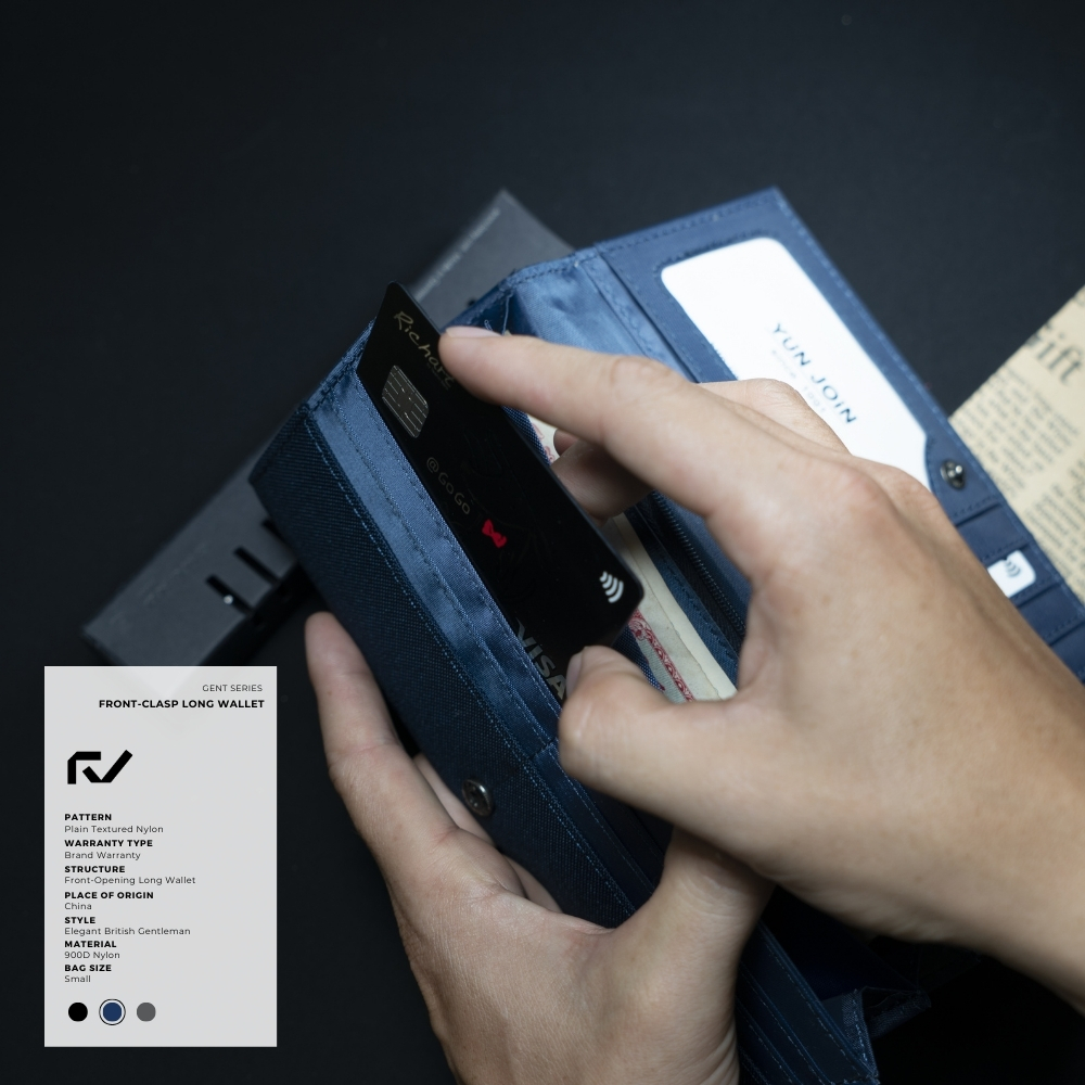 感謝各位蒞臨 YUJI本商店絕對 100% 公司現貨供應且商品一律附上發票合法登記營業之店家,安全品質有保障。【產品介紹】前扣對折式長夾簡約的設計適合都會上班族、學生使用內部分上下兩側,各有6個卡位。可收納很多卡片。大鈔夾層上下各二,下層除了卡位夾層外還有拉鍊零錢收納夾層、暗袋非常適合收納發票收據等雜物。【產品規格】材質:900D 尼龍布尺寸:19 * 9 * 2 cm重量:170 g結構:對折式長夾顏色:黑色、藍色、灰色#YUNJOIN #長夾 #皮夾 #錢包 #皮夾#日系 #素面 #典雅 #耐看 #耐用 #紳士#防潑水─────────────────────────────────────────────────────────────【客服】線上快速諮詢有問題歡迎詢問,專人在線為您服務。若有任何問題或是收到商品時發現異常,可拍照片傳至聊聊客服人員上班時間會馬上為您處理。服務時間:週一至週五09:00~18:00