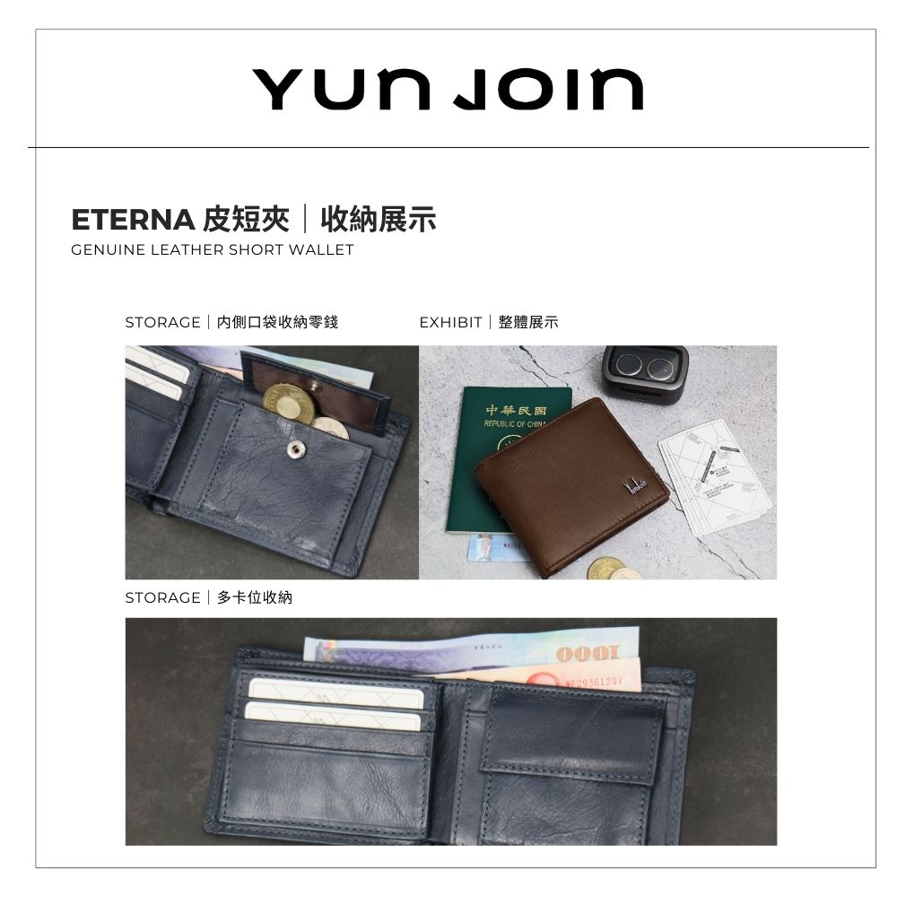 【YUNJOIN】Eterna 真皮短夾-咖啡色 多卡位 零錢 收納皮夾 中性皮夾