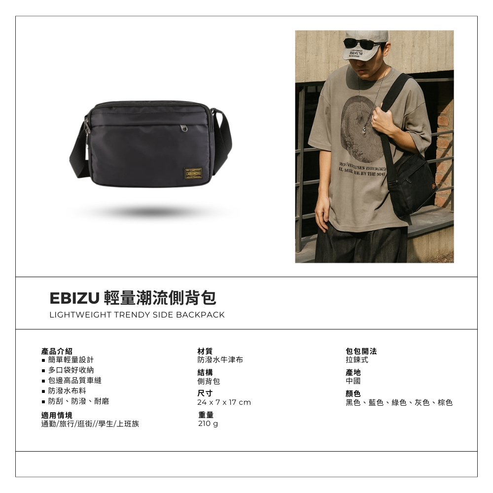 【YUN Select】EBIZU 輕量潮流側背包-黑色 側背包 斜肩包 斜背包 日系 新宿街頭 男裝搭配