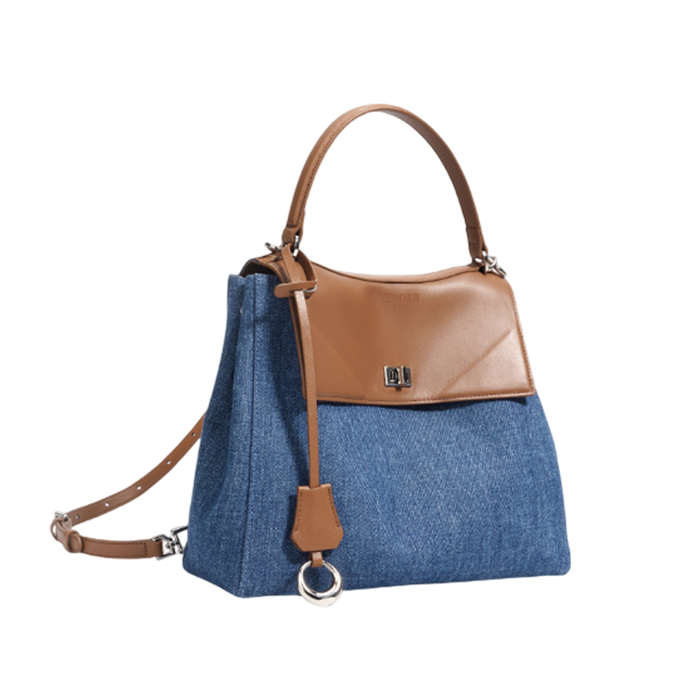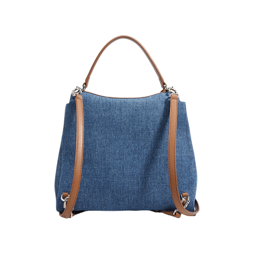 【ZENDAR】限量1折 頂級小牛皮牛仔布後背包 凱西系列 全新專櫃展示品
