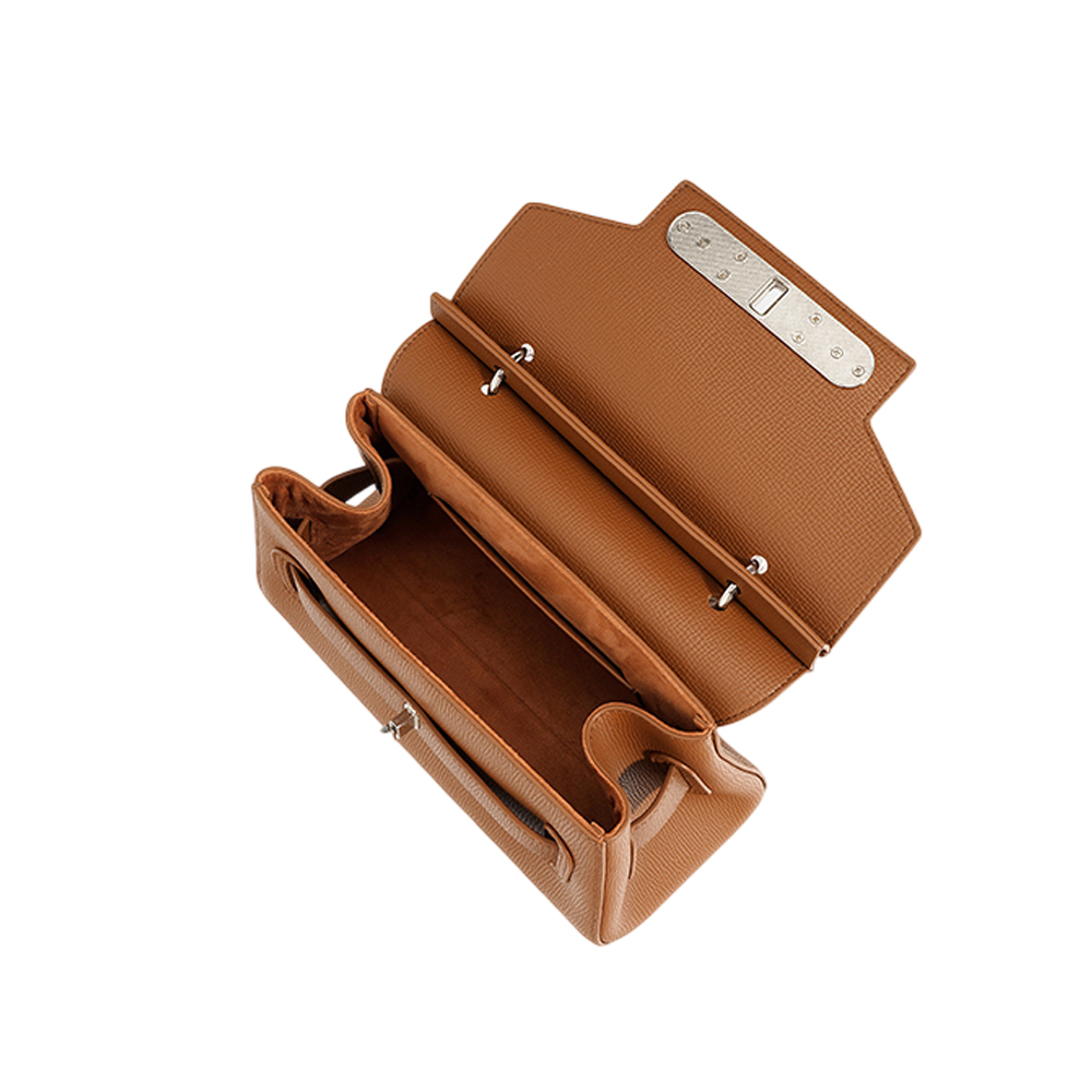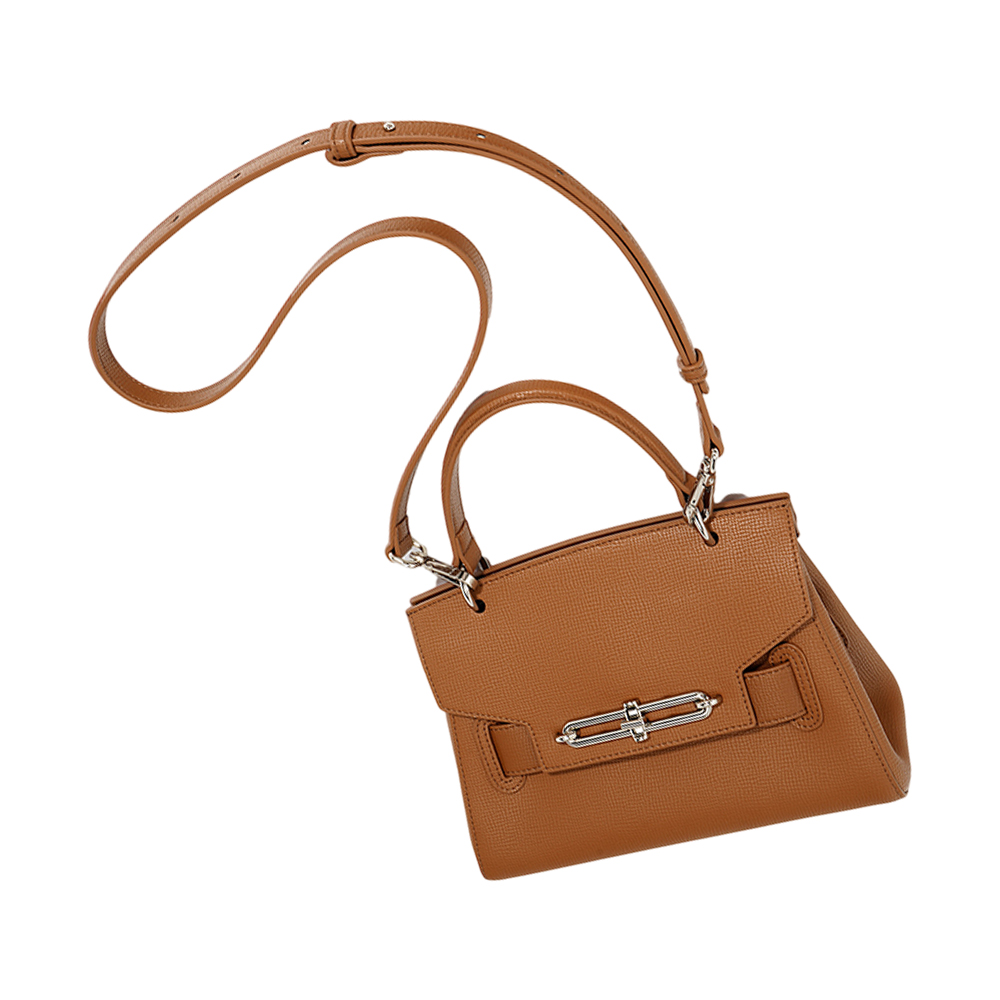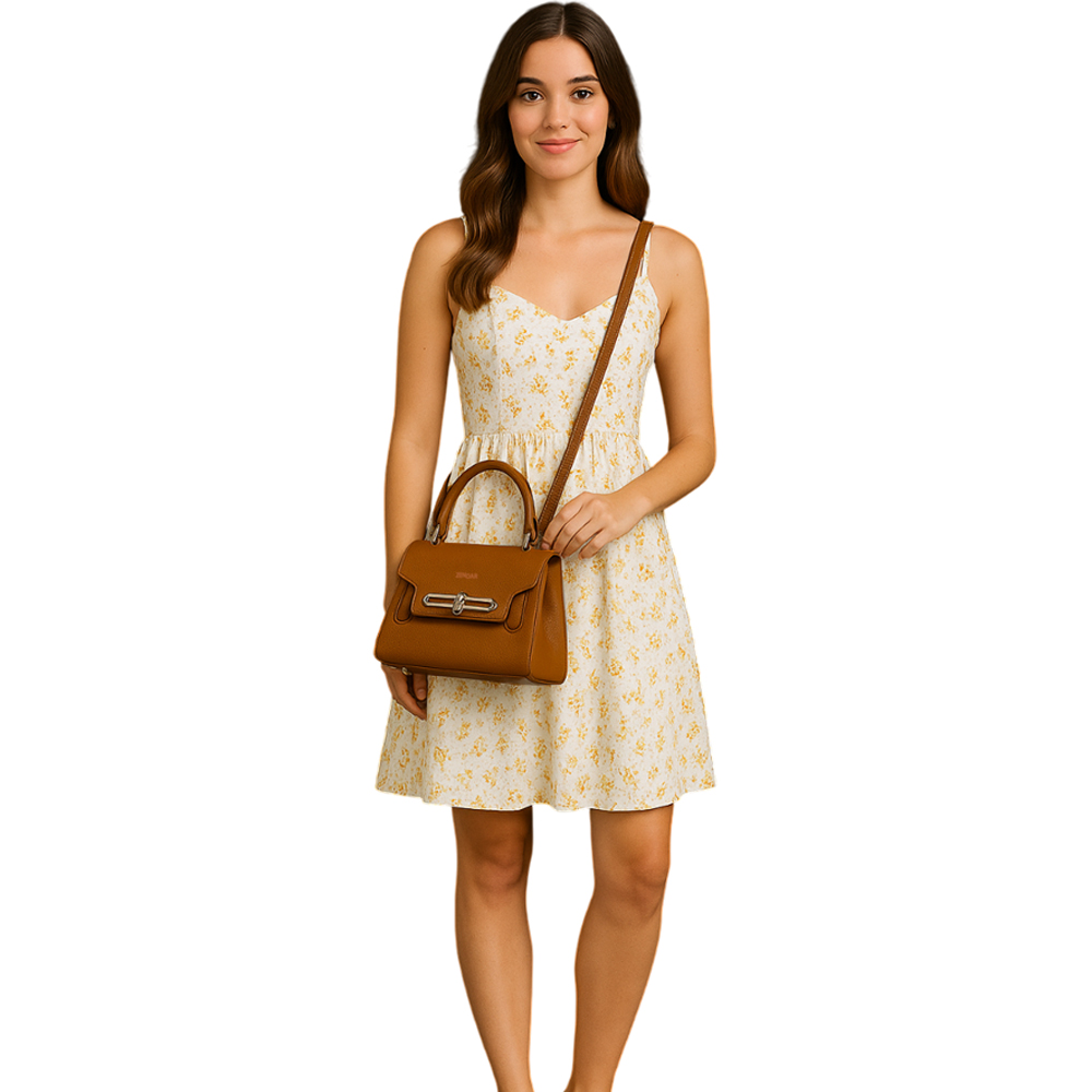 【ZENDAR】限量1折 頂級小牛皮防刮十字紋肩背包手提包 夢特系列 全新專櫃展示品(琥珀色)
