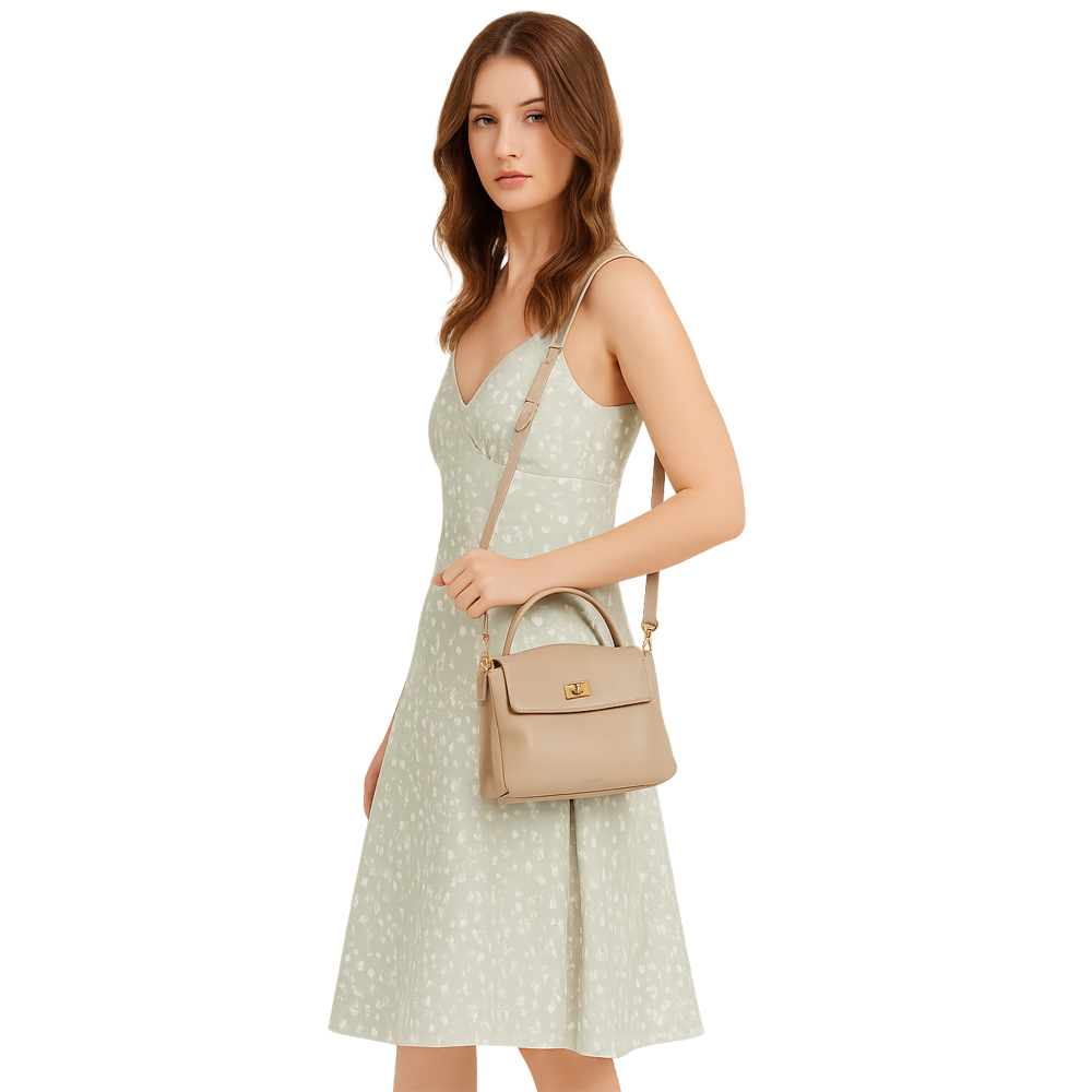【ZENDAR】限量1折 頂級小牛皮肩背包手提包 喬伊系列 全新專櫃展示品(奶杏色)